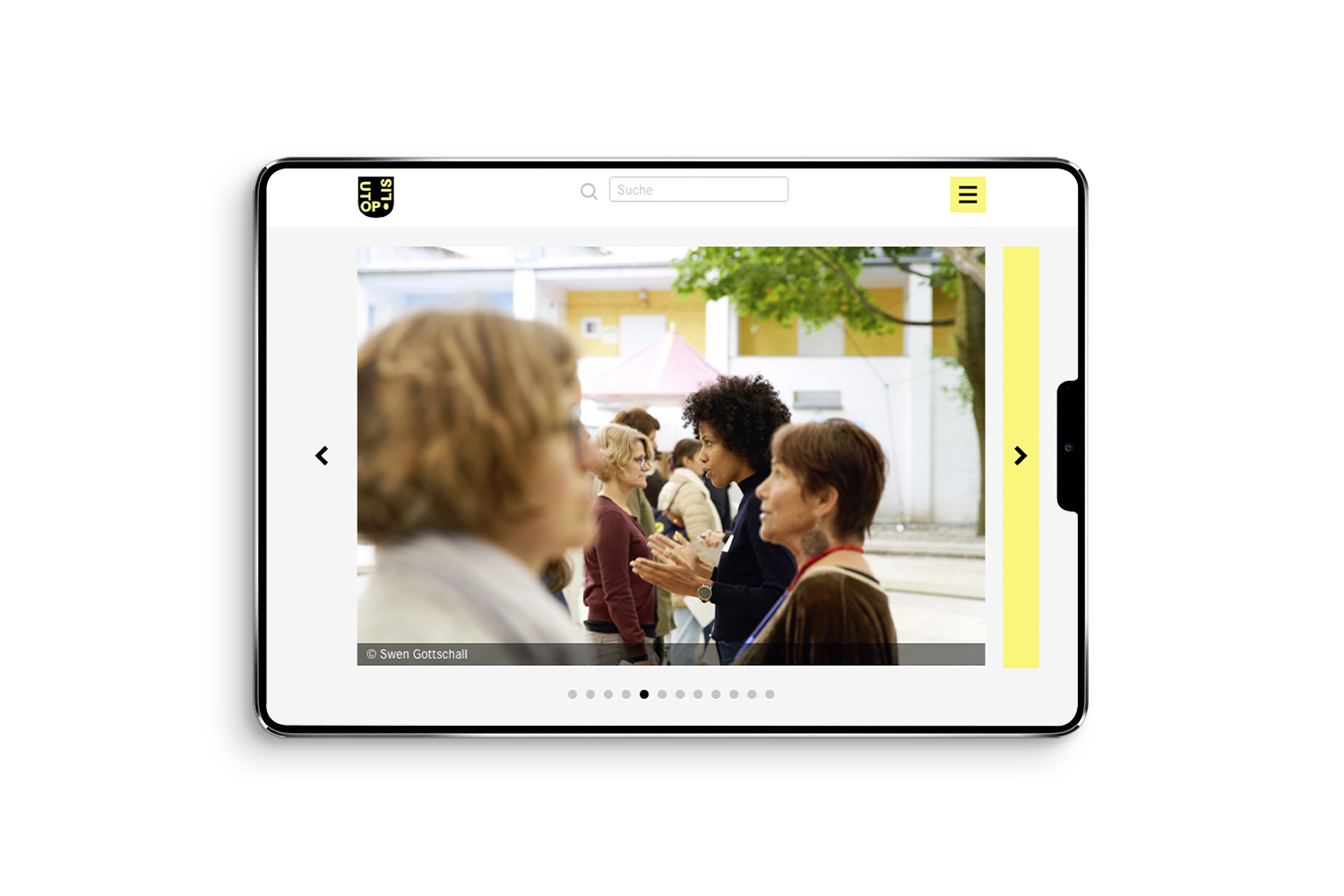 The corporate design draws from construction sites and warning signs: Something new is being built here! The website’s layout was modeled on a pegboard, with modules hanging from the top edge like tools. There are circular holes, boxy elements and dotted outlines, as if some of the tools had not been hung back up in their places yet. The site is built on a CMS-based template, making it easy to add new modules in the future. New utopias, new challenges!